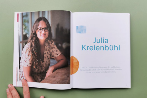 Julia Kreienbühl ist Textildesignerin und Mutter und hat mit little indi ein nachhaltiges Kleiderlabel für Kinder gegründet. Sie sieht sich nicht primär als Macherin, sondern macht vor allem das, was ihr Freude macht. Sie ist eher schüchtern und schildert auch, mit welchen Ängsten sie umzugehen hat.